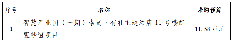 一、采購項目名稱:智慧產(chǎn)業(yè)園(一期)崇賢·有禮主題酒店11號樓配置紗窗項目