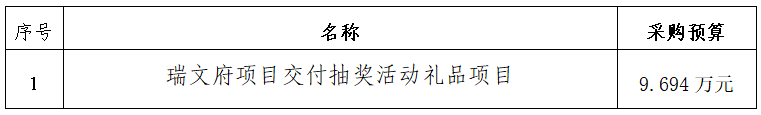 一、采購項(xiàng)目名稱:瑞文府項(xiàng)目交付抽獎(jiǎng)活動(dòng)禮品項(xiàng)目