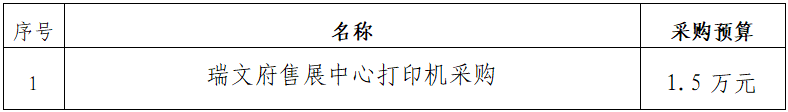 一、采購項(xiàng)目名稱:瑞文府售展中心打印機(jī)詢價采購項(xiàng)目