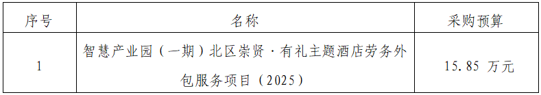 一、采購項目名稱:智慧產(chǎn)業(yè)園(一期)北區(qū)崇賢·有禮主題酒店勞務(wù)外包服務(wù)項目