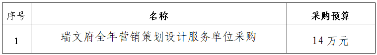 一、采購項目名稱:瑞文府全年營銷策劃設計服務單位采購詢價項目