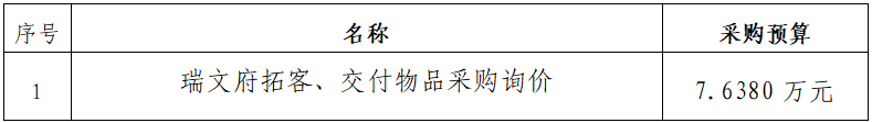 一、采購項目名稱:瑞文府拓客、交付物品采購詢價項目