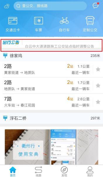 一、衢州行APP。在衢州行首頁出行公告欄中會滾動彈出查詢公交公司發(fā)布的相關公告(如下圖),市民可以根據各自的需求進行查詢;