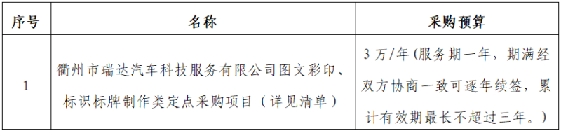 一、項(xiàng)目名稱:衢州市瑞達(dá)汽車科技服務(wù)有限公司圖文彩印、標(biāo)識(shí)標(biāo)牌制作類定點(diǎn)采購(gòu)項(xiàng)目