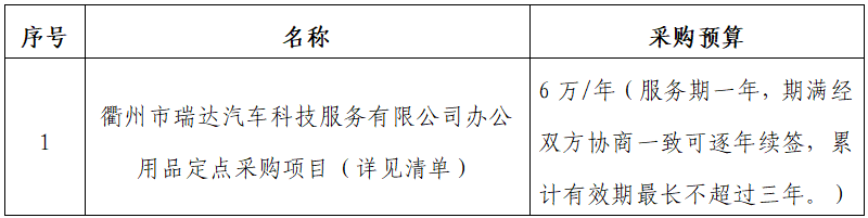 一、項(xiàng)目名稱:衢州市瑞達(dá)汽車科技服務(wù)有限公司辦公用品定點(diǎn)采購(gòu)項(xiàng)目