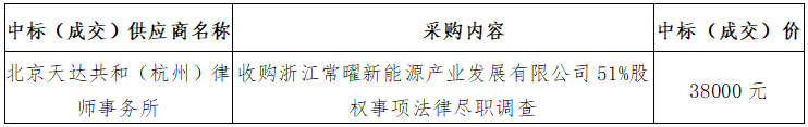 五、采購內(nèi)容:收購浙江常曜新能源產(chǎn)業(yè)發(fā)展有限公司51%股權(quán)事項法律盡職調(diào)查。