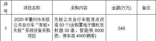 參照《中華人民共和國政府采購法》、《政府采購貨物和服務(wù)招標投標管理辦法》等規(guī)定,浙江中信工程咨詢有限公司受浙江衢州公交集團有限公司委托,就2020年衢州市本級公共自行車“有樁+無樁”系統(tǒng)設(shè)備采購項目進行公開招標采購,歡迎國內(nèi)合格的供應(yīng)商前來投標。