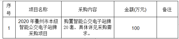 參照《中華人民共和國政府采購法》、《政府采購貨物和服務(wù)招標(biāo)投標(biāo)管理辦法》等規(guī)定,浙江中信工程咨詢有限公司受浙江衢州公交集團(tuán)有限公司委托,就2020年衢州市本級(jí)智能公交電子站牌采購項(xiàng)目進(jìn)行公開招標(biāo)采購,歡迎國內(nèi)合格的供應(yīng)商前來投標(biāo)。