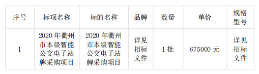 二、項(xiàng)目名稱(chēng):2020年衢州市本級(jí)智能公交電子站牌采購(gòu)項(xiàng)目