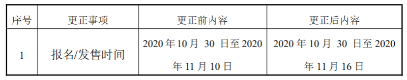 四、更正理由:報名/發(fā)售時間變更