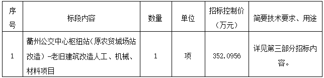 二、項(xiàng)目名稱(chēng):衢州公交中心樞紐站(原農(nóng)貿(mào)城場(chǎng)站改造)-老舊建筑改造人工、機(jī)械、材料項(xiàng)目