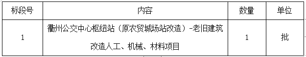 二、項目名稱:衢州公交中心樞紐站(原農(nóng)貿(mào)城場站改造)-老舊建筑改造人工、機(jī)械、材料項目
