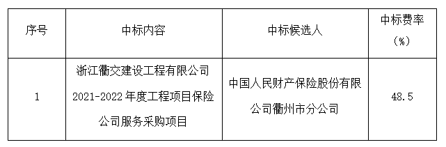根據(jù)《中華人民共和國(guó)招標(biāo)投標(biāo)法》等有關(guān)法律法規(guī)的規(guī)定,浙江建安工程管理有限公司受浙江衢交建設(shè)工程有限公司委托,對(duì)其浙江衢交建設(shè)工程有限公司2021-2022年度工程項(xiàng)目保險(xiǎn)公司服務(wù)采購(gòu)項(xiàng)目采用公開(kāi)招標(biāo)方式進(jìn)行招標(biāo)。浙江建安工程管理有限公司于2021年08月17日09時(shí)30分在衢州市交通投資集團(tuán)二樓開(kāi)標(biāo)廳(衢州市柯城區(qū)白云街道花園中大道86號(hào))進(jìn)行開(kāi)評(píng)標(biāo)。評(píng)標(biāo)結(jié)果及相關(guān)事宜現(xiàn)公示如下: