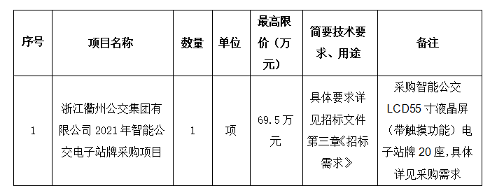 項(xiàng)目名稱:浙江衢州公交集團(tuán)有限公司2021年智能公交電子站牌采購(gòu)項(xiàng)目