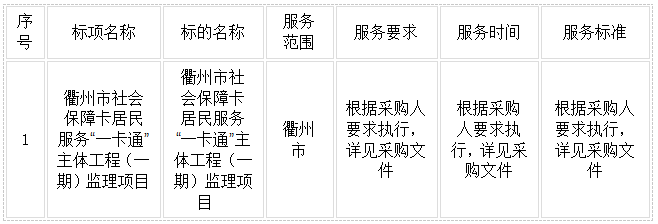 二、項(xiàng)目名稱:衢州市社會(huì)保障卡居民服務(wù)“一卡通”主體工程(一期)監(jiān)理項(xiàng)目