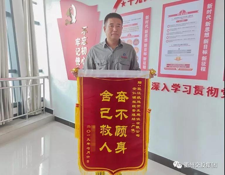 7月10日,市民張女士一行人把一面寫有“奮不顧身舍己救人”字樣的錦旗送到了集團(tuán)下屬子公司——衢州市巨江航運(yùn)建設(shè)開發(fā)有限公司下轄安仁鋪航電樞紐管理站,感謝該站職工嚴(yán)俊不顧自身安危,冒雨下河救人的義舉?!八攘巳酥鬀]留名字就走了,我們打聽了很久,才知道是這里的員工,特地送面錦旗表達(dá)感激之情?!睆埮空f。