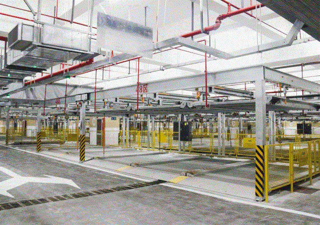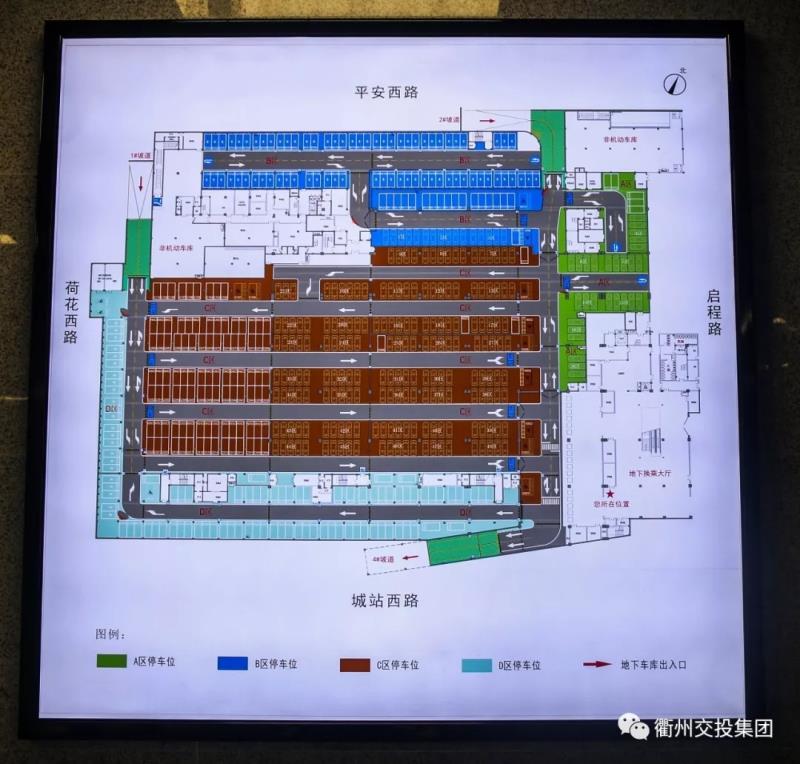 停車場分為A/B/C/D四個區(qū)域,共設(shè)置了740余個車位(含部分殘疾人專用車位),其中立體機械車位400多個,普通地面車位300多個。并安裝了20個充電樁(18個快充,2個慢充),以滿足新能源汽車需求。