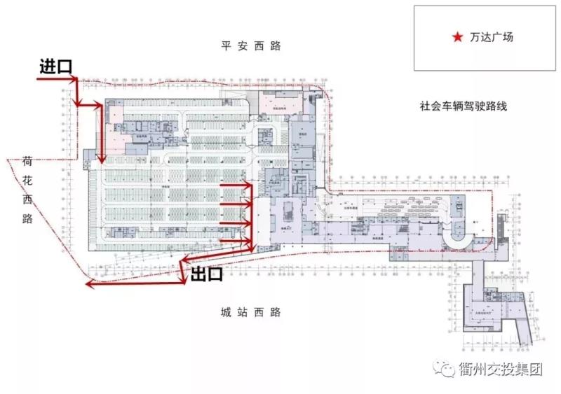 車輛從平安西路進入綜合客運樞紐西北側(cè)汽車坡道駛?cè)氲叵峦\噲?,在停車位?guī)范停放好車輛即可。