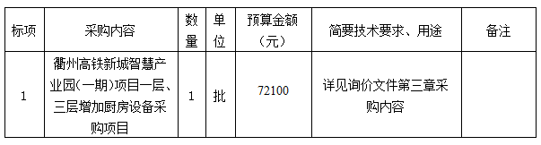 附件:衢州高鐵新城智慧產(chǎn)業(yè)園(一期)項(xiàng)目一層、三層增加廚房設(shè)備采購(gòu)項(xiàng)目