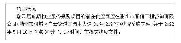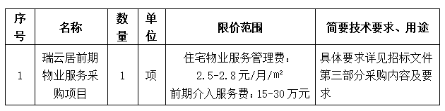 項(xiàng)目名稱:瑞云居前期物業(yè)服務(wù)采購項(xiàng)目