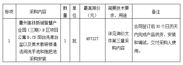 附件:衢州高鐵新城智慧產(chǎn)業(yè)園(三期)B區(qū)項目公寓B、CD陽臺洗漱臺盆以及美術(shù)教研樓清潔間洗手池和拖把池采購安裝項目