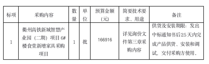 附件:衢州高鐵新城智慧產(chǎn)業(yè)園(二期)項目6#樓食堂新增家具采購項目