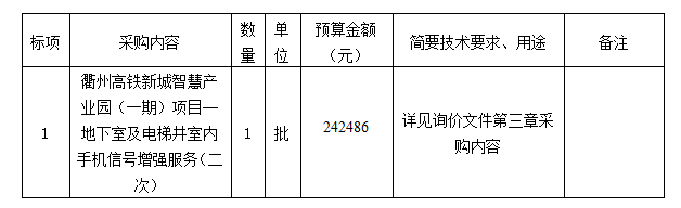 附件:衢州高鐵新城智慧產(chǎn)業(yè)園(一期)項目地下室信號增強設(shè)備采購項目(二次)