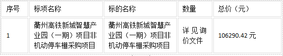 二、項目名稱:衢州高鐵新城智慧產(chǎn)業(yè)園(一期)項目非機動停車棚采購項目