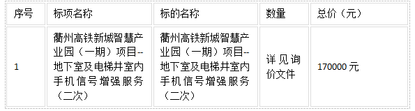 二、項目名稱:衢州高鐵新城智慧產(chǎn)業(yè)園(一期)項目--地下室及電梯井室內(nèi)手機信號增強服務(wù)(二次)