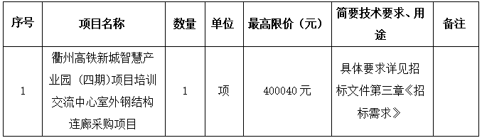 項目名稱:衢州高鐵新城智慧產(chǎn)業(yè)園 (四期)項目培訓(xùn)交流中心室外鋼結(jié)構(gòu)連廊采購項目
