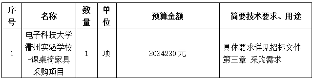 項(xiàng)目名稱:電子科技大學(xué)衢州實(shí)驗(yàn)學(xué)校-課桌椅家具采購項(xiàng)目