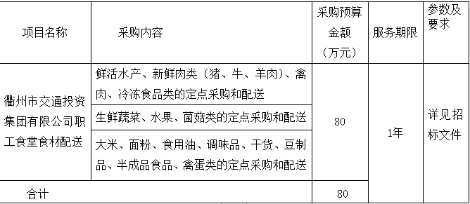項(xiàng)目名稱:衢州市交通投資集團(tuán)有限公司職工食堂食材配送采購(gòu)項(xiàng)目