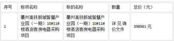 二、項(xiàng)目名稱:衢州高鐵新城智慧產(chǎn)業(yè)園(一期)10#11#樓酒店客房電器采購項(xiàng)目