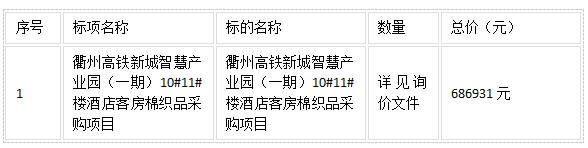 二、項(xiàng)目名稱(chēng):衢州高鐵新城智慧產(chǎn)業(yè)園(一期)10#11#樓酒店客房棉織品采購(gòu)項(xiàng)目