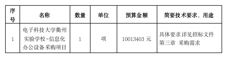 項(xiàng)目名稱:電子科技大學(xué)衢州實(shí)驗(yàn)學(xué)校-信息化辦公設(shè)備采購項(xiàng)目