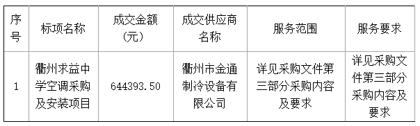 二、采購項目名稱:衢州求益中學空調(diào)采購及安裝項目