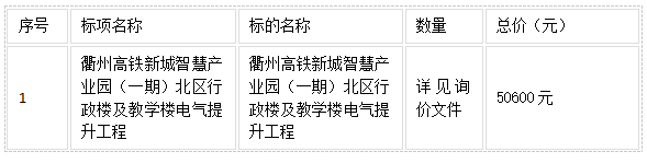 二、項(xiàng)目名稱:衢州高鐵新城智慧產(chǎn)業(yè)園(一期)北區(qū)行政樓及教學(xué)樓電氣提升工程