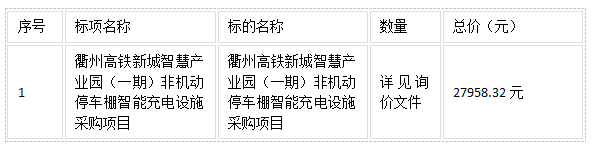 二、項目名稱:衢州高鐵新城智慧產(chǎn)業(yè)園(一期)非機動停車棚智能充電設(shè)施采購項目