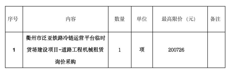 二、項(xiàng)目名稱:衢州市泛亞鐵路冷鏈運(yùn)營平臺(tái)臨時(shí)貨場建設(shè)項(xiàng)目-道路工程機(jī)械租賃詢價(jià)采購