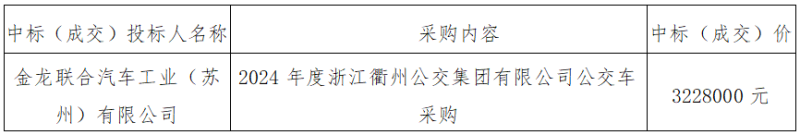 三、標項名稱:2024年度浙江衢州公交集團有限公司公交車采購項目
