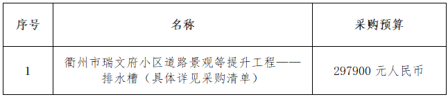 一、項(xiàng)目名稱:衢州市瑞文府小區(qū)道路景觀等提升工程——排水槽