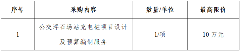 一、項目名稱:公交浮石場站充電樁項目設(shè)計及預(yù)算編制服務(wù)詢價