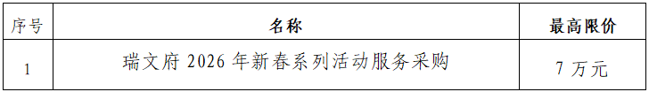 根據(jù)《衢州市市屬國有企業(yè)采購管理辦法(試行)》規(guī)定,以詢價方式對瑞文府2026年新春系列活動服務(wù)項(xiàng)目進(jìn)行采購,歡迎合格的供應(yīng)商參加。
