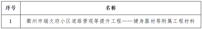 一、采購項(xiàng)目名稱:衢州市瑞文府小區(qū)道路景觀等提升工程——健身器材等附屬工程材料采購項(xiàng)目