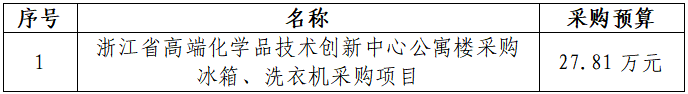 一、采購項目名稱:浙江省高端化學(xué)品技術(shù)創(chuàng)新中心公寓樓采購冰箱、洗衣機采購項目