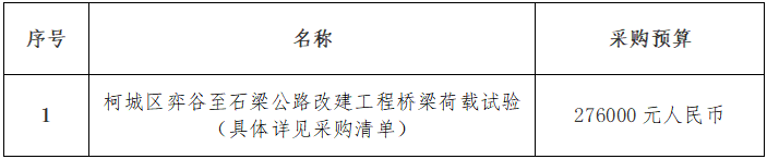 根據(jù)《衢州市市屬?lài)?guó)有企業(yè)采購(gòu)管理辦法(試行)》規(guī)定,以公開(kāi)詢(xún)價(jià)方式對(duì)柯城區(qū)弈谷至石梁公路改建工程橋梁荷載試驗(yàn)進(jìn)行采購(gòu),歡迎合格的供應(yīng)商參加。