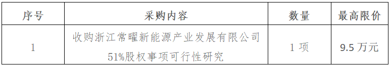 二、項(xiàng)目名稱:收購浙江常曜新能源產(chǎn)業(yè)發(fā)展有限公司51%股權(quán)事項(xiàng)可行性研究