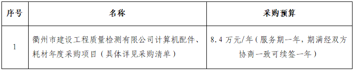 一、項目名稱:衢州市建設工程質量檢測有限公司計算機配件、耗材年度采購項目