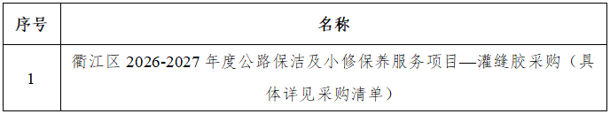 一、采購項目名稱:衢江區(qū)2026-2027年度公路保潔及小修保養(yǎng)服務項目——灌縫膠采購