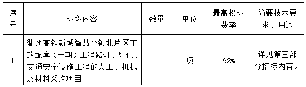 二、項(xiàng)目名稱:衢州高鐵新城智慧小鎮(zhèn)北片區(qū)市政配套(一期)工程路燈、綠化、交通安全設(shè)施工程的人工、機(jī)械及材料采購(gòu)項(xiàng)目
